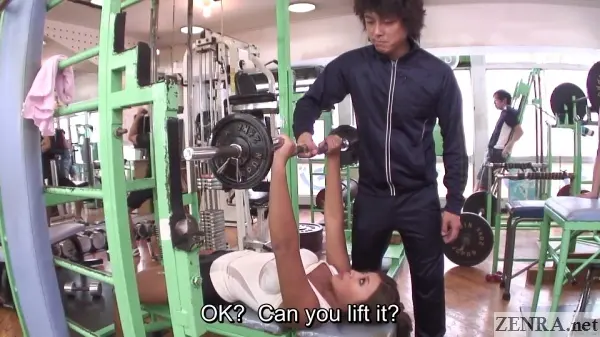 BODY PAINT AT THE GYM is a relatively quiet title.  Literally the first ten minutes or so simply has NAMI walking around training and exchanging brief pleasantries to other gym-goers.  Soon after perma-perm OKUMURA becomes her impromptu trainer.  Their training session starts normal, but once he notices how exposed he is, things quickly go off the rails.  Dialog goes from standard personal trainer banter to a few sexual word puns before hard play commences.  From there, it's uncensored JAV so you know how it goes.