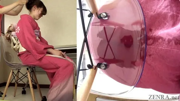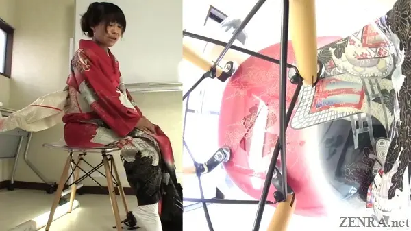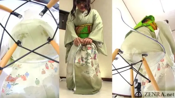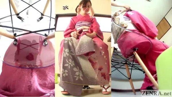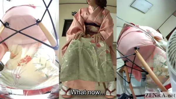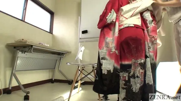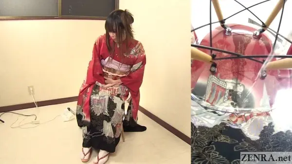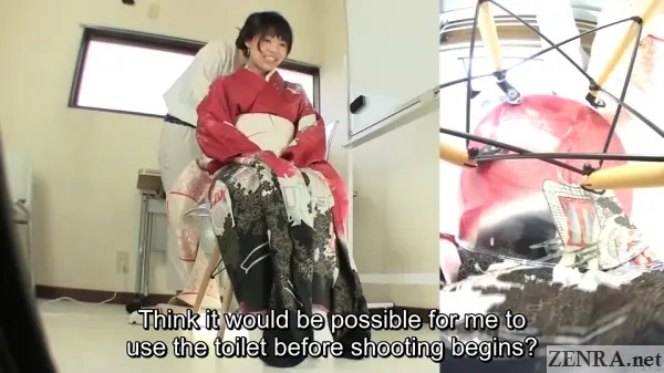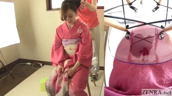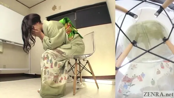 The urge to pee and the failure to hold it in while wearing something majestic is the theme for all the scenes in this well-shot FHD release. Sometimes the amateurs may already be dressed for their 'shoot' and other-times we may see them being helped by HAISETSU's actual female assistant director who surprisingly knows a thing or two on kimono dressing (which is harder than it looks!). We actually met her in person last year and the way she acts on film is actually how she is in person. She's very folksy and makes for a perfect AD.