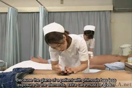 Tekoki Clinic Volume Three There exists a very, very specialized doctor's office in Japan that caters to the needs of patients that have very unique conditions. Staffed by various female doctors and nurses between 20 and 40 years of age, they know what's best when treating their charges. The Sexual Health Clinic, or Sex Clinic for short is growing popular as its outgoing staff please their horny clientele with a spoonful of gusto. One of the more standard options offered is a thorough cock cleaning service involving one of the cheerful nurses who engages in small talk while giving your erect southern soldier a thorough scrubbing with her soft, warm hands. Sometimes if you are lucky, you'll be assigned to a trainee nurse who will be instructed by a more mature doctor on the correct arts of cock care so you'll have 4 sets of hands working on you instead of two. Another unique service offered is a special cleansing similar to the above cock cleaning service but instead of hands, nurses use their mouths and sometimes their wet slits as well (and sometimes you'll have 3 nurses assigned to you pleasuring you in 3 different areas simultaneously!). Many a time, while your naked body is totally exposed to your assigned nurse, other nurses and milf doctors may randomly walk in from time to time to take notes for future reference so for the in you, it's heaven on earth and CFNM to it's uppermost extreme. In one of the later scenes, we see a whole room of patients all booked for erectile dysfunction simultaneously receive a very extreme level of treatment that involves their nurse to remove her pantyhose and panties and mount him from above thus engaging in actual intercourse to get him back to a clean bill of health! As explained by the head milf doctor one time while she was giving a medicinal handjob to a less-serious case, the reason for the intercourse procedure is that the mixing of vaginal juices from Japanese nurses has a profound effect of the penis health of men who have a 'hard' time getting it up. From what we can see, her recommendation holds true as this procedure—bizarre as it truly is, really works! SUBTITLED DOWNLOAD - 1 2 3 |