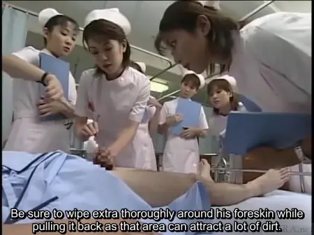 One of the first segments in this multi-clip series is of a group of trainee Japanese nurses who are instructed by their somewhat milf'ish head nurse on the how to give a 'medicinal' handjob. In fact, they are given the whole run from how to gently unbutton and remove the patient's gown and underwear, how to lube up the cock and if it's not already hard, how to get it there, and what to do when the patient is ready for 'release'.