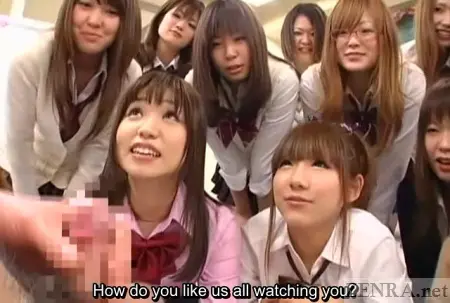 While watching and commenting on all things penis, these attentive Japanese schoolgirls view their male companions as they furiously stroke away in various states of undress. Some go about it Puritan-style with just their fly unzipped and member hanging out while others strip down to their birthday suits. In fact, there even was one bizarre customer who walked into the classroom totally naked! His weirdness was only one-upped by a flexible bottomless client who stood up backwards on the flimsy wooden chair bent over so his schoolgirl companion could stare and blow air into his anus while he pleasured himself.