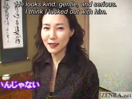 JAPANESE WIFE JAV DEBUT is based on some truths and other ho-hum made-up tales to make the title even better. Is this really RUNA's--an owner of not one, but two hostess clubs--debut title? No, it was her third, but first where she actually was just playing herself rather than shoehorned into an anonymous wife drama role. Is she in ? According to the interview in scene one, she surely was. A combination of an insurance windfall and "hell" loans sees her deciding to enter the JAV industry where appearing in front of a camera for a day of shooting can net a pretty hefty paycheck.