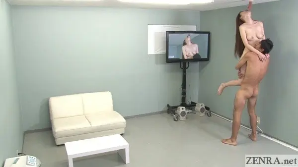 30 minutes pass. Blindfolds off. You can almost consider their blinded conversation to be a really unique blind date. They can get to know each other without seeing each other, but do so knowing they're in a very sexually-charged situation both being naked and all. Once those blindfolds go off though, things really start to get strange: In the first scene, in order to 'escape', we see a cherubic actress finding a note requiring her to covertly masturbate to orgasm without her partner finding out. In scene two, it's to give a dick hanging from the ceiling a blowjob (while the man holds her up trying to avoid getting erect!). The last? No explicit directions, but rather one long, extended, and awkward naked first date that ends with...