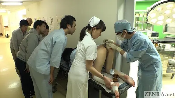 The name's self-explanatory, really. Bottomless, embarrassed women in a world gone mad. Each one of them in the four scenes that make up this 120 minute movie are our connections to the real world. This is another one of those mass instigator JAV movies where everyone is in on the except for one (or two as we see in the third scene) woman. It's bottomless CMNF from start to finish done in a purely medical setting.
