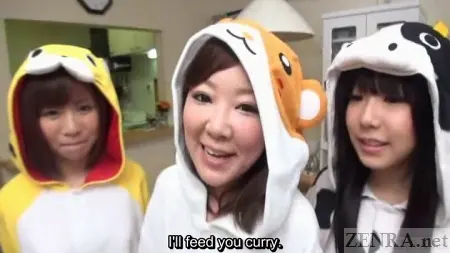 There is no grand story-line here. No reason is given as to why these three Japanese women elect to wear nothing but cosplay pajamas and remain stark naked underneath. They also don't seem to have any other changes of clothes. Generally, a lacking story-line can be placed squarely in the negative column when evaluating a Japanese AV production, but strangely it works for this one. The lack of explanation as to preternatural attire choices these women make is actually kind of comical.