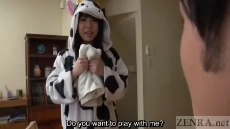 That's what today's production is about, really. Not normal cosplay per say, but pert Japanese AV stars living out the fantasies of those who enjoy their women dressed from head to toe as wildlife. There's the cow, the tiger, and something that resembles a hamster. All feature fluffy hoods that at times cover their faces and all work wonders at hiding their bodies.