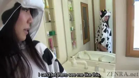 Shocked discoveries highlight the early portion of scenes where the cosplay-clad AV stars gaze in disbelief at the bathroom mirror while wondering out loud why their wardrobe has been altered so. Some feign anger, but most are simply surprised and worry about how they can go outside in such a state. It really does seem like their chosen cosplay pajama getups are their only outfits!