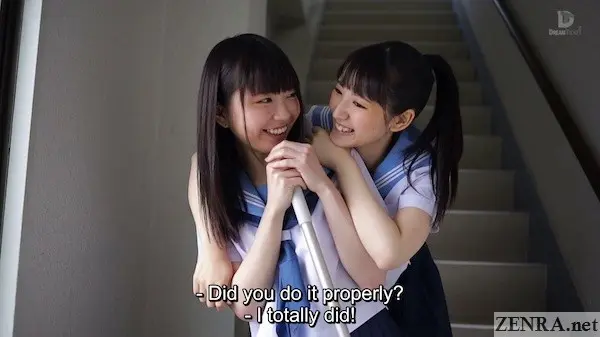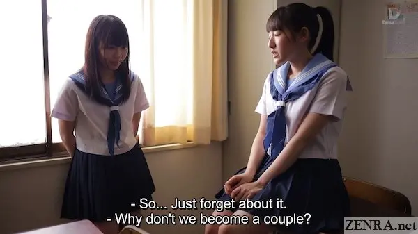 Starring CHIHARU SAKURAI, an actress who debuted for SOD after doing a few uncensored movies including one for out friend Covert Japan and AI KAWANA, an actress I admit I don't know much about, NO LONGER JUST FRIENDS's storyline is pretty easy to understand.  Two schoolgirls, two best friends, but soon one will be moving away.  What best way to fortify their love for each other than with lesbian lovemaking?  This takes elements of WHERE AN INNOCENT LOVE LETTER TAKES US and slightly--ever so slightly!--reduces some of the fanciful elements in it.  Both are beautiful stories about JAV schoolgirls going all the way with each other though what happens in NO LONGER JUST FRIENDS is ever so slightly more realistic (for example, I don't recall their being a nocturnal rimjob scene in the classroom though classroom play does happen!).