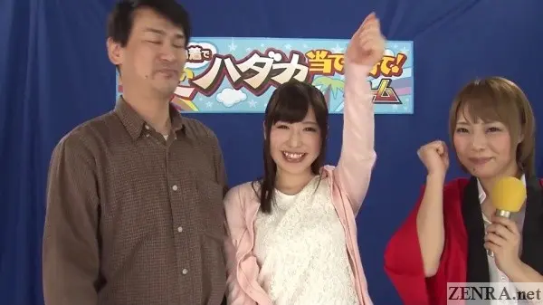The third edition of RAISE THE SKIRTS EDITION yet again features a different host. No, it's not RIRI KOUDA. While still active when this was shot, I figure her schedule and ROCKET's didn't work out hence her absence. This time we get the VASTLY under-rated HARUNA IKOMA. I don't consider myself an uber-fan given her output not being too vast, but I've always had a soft spot for her. She really is something else looks-wise. Perhaps the beauty mark on her chin may throw some people off, but with or without it, I think she's one of the more naturally beautiful women to have done JAV in recent memory. She's also really, really naughty (we showed a real creampie group sex movie with her after all!). Her visage almost, but not quite, made me want to look away from the fantastic always-on nudity this game show entailed. Yes, she's that much of an eye-pleaser though when it comes to overall great hosting, RIRI will forever be the best.