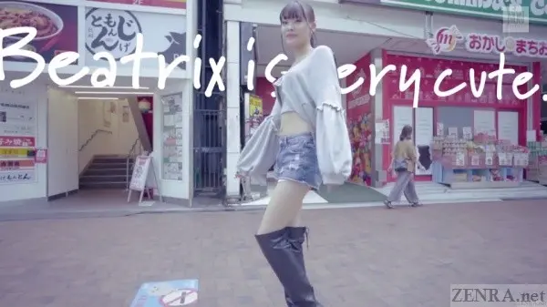 The other issue runs deeper.  Some years ago we showed a pretty good movie starring AKARI YUKINO.  Visually, it was as good as it gets.  But I had a problem with it that occurs again here and I don't know if it's simply my ignorance about newhalfs, but from what I have heard, once you start transitioning, it may become harder to maintain an erection let alone ejaculate on a regular basis.  True or not, what hurts believability--and certainly makes the life of a subtitler more tedious--is when you have a performer with a very flaccid penis constantly saying they're either about to cum or are cumming.  Obviously, that is not the case and when it's being belted out every 30 seconds or more, as a fan trying to enjoy the picture, you start to wonder just how much you are watching is acting and how much is actual passionate love-making.  Sure, I don't want to see Beatrix play a dead fish, but it's hard to accept she was on the verge of orgasming or downright orgasming nonstop for almost the entire movie.  I don't think our bodies--be it male, female, or anything in between--work that way.