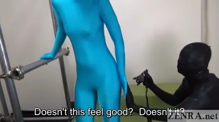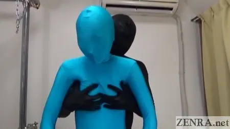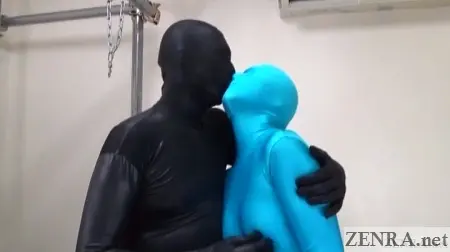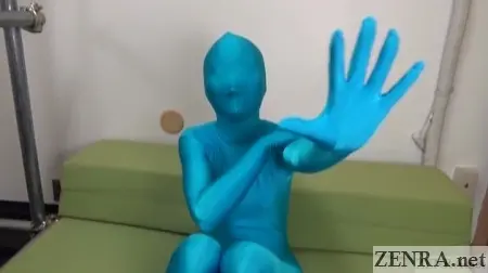 Now, not all ZENTAI play can be carried out outside--at least not easily and certainly not morally.  There are other 'activities' that define the ZENTAI culture.  We're talking about the more erotic side to being covered in form-fitting material while usually wearing nothing at all underneath.  That's how you roll when you go ZENTAI--at least when you're a cute Japanese AV star taking part in an unorthodox photography club event.