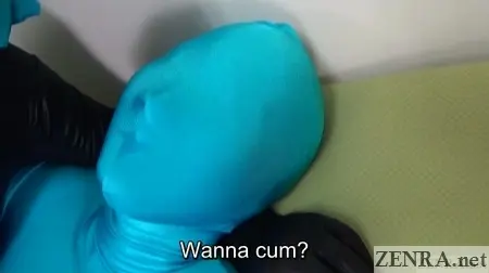 Although touching is not allowed at these events, the lure of a major payday is enough and she allows the cardinal rule to broken.  Touching turns to fondling and fondling leads to mutual masturbation with some very novel ways of sexual release that involve contact, but through ZENTAI suits.  The fan's suit even has an erection sock which she eagerly massages and strokes until he orgasms.