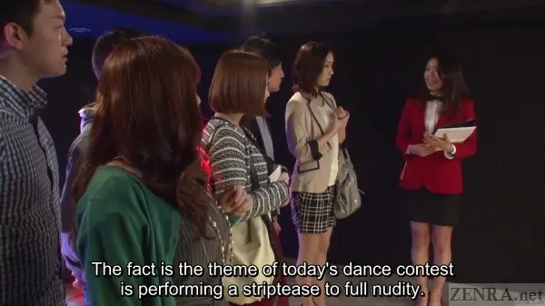 With RIRI KOUDA returning to host, we start off on firm footing in THE RISKY STRIP SHOW ENDURANCE GAME 2.  The same host, same set, and same everything really.  The only two differences are the new cast and this time younger men rather than the geezers from the first one.  I'll lay my cards out:  the casting this time is GLORIOUS.  While the previous had KYOKO MAKI showing how it was done, one of her costars was very miscast in a movie about strip dancing because she frankly could not dance.  That she was naked makes saying 'distractingly bad' not necessarily a bad thing, but I'm happy this time we get three very capable JAV stars who are all very easy on the eyes to boot.  From MIKUNI MAISAKI who should have been A-rank material given her curves and smile to die for, YUNI KATSURAGI who just nails the mysterious eros vibe like nobody's business, and the ultra curvy and approachable AKANE MIZUSAKI who looks like the kind of person who knows where all the great Turkish restaurants and belly dancing hot-spots are in Tokyo, you can't go wrong.  And of course, RIRI has ample screen-time as well in her trademark red outfit.