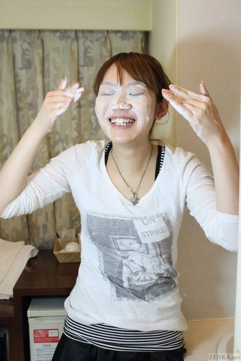 Limited time and a lot to do. You've an interview followed by the title's namesake of washing off makeup. This is followed by showering including a quick blowjob and then the real play in bed. On paper, it sounds standard fare and I really wish it flowed like one. Sadly, the biggest flaw of today's update is in spite of it running as long as most any other movie in this series, even calling the sex shoehorned would be an insult to good sneakers and actual shoehorns anywhere because sex itself lasts for a grand total of five (5) minutes in two (2) positions with a quick facial conclusion. Facials I can't knock off points for because while creampies are the norm for this studio, it makes sense to finish higher up given this series' theme. Sadly, whether it's the actor's fault or the actress, we get something closer to a dead fish scenario in slow motion here. Talking is fun and fierce early on, but near mute after. An actor's duty is to liven up the scene and finish when it's time and perhaps he nailed the last part with gusto, but this was a very muted production that desperately needed a fun injection.