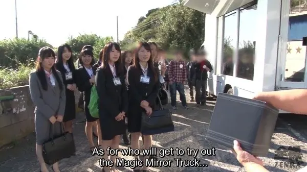 In a...uh...gargantuan--no! Epic (!) movie via SOFT ON DEMAND we've almost a perfect example of the kind of movie a JAV fan can take and show fans of western adult video just how it should be done: HUGE groups (24+!), huge locations (banquet hall and full-fledged onsen!), fun and naked sex games, and lots and lots of sex. Oh, and the Magic Mirror truck too for good measure. OH, and a super sexy clothing optional bus ride to get it all started. Pretty much anything besides MILFS (sorry!), anal, creampies (at least no fakery here!), and newhalfs are present in the lovingly named SOFT ON DEMAND FEMALE EMPLOYEES ULTIMATE FAN THANKSGIVING SPECIAL - MAGIC MIRROR, STRIP ROCK-PAPER-SCISSORS, NAKED GAMES, AND ORGIES (and trust me, the 'ZENRA' title while insanely long is still only about half as long as the original Japanese).