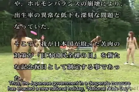 ZENRA #Subtitled #ClassicJAVIn an effort to curtail emissions and a low birth rate Japan enacts the first ever nationwide compulsory National Nude Day now with English subtitles.