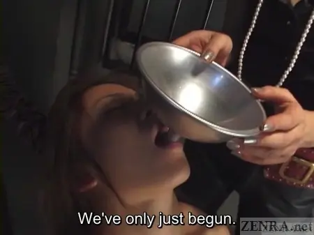 Nana Miyachi in a lesbian S&M title with famous Japanese AV femdom professionals Tsubaki Kanda and Ibarako in a joint release by GUTS, Epicurean, and SUN SHOP.