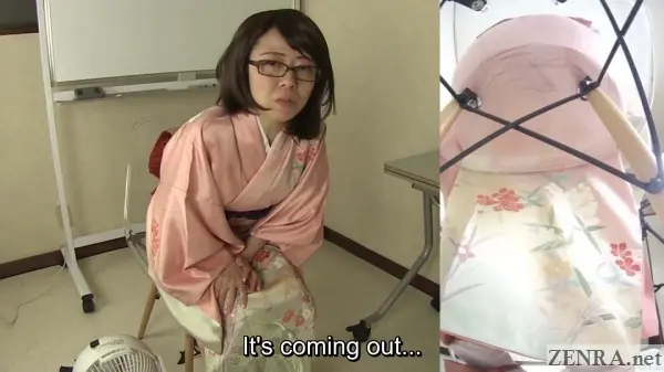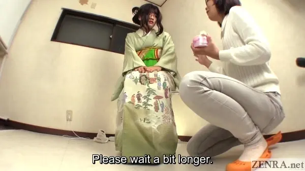 The urge to pee and the failure to hold it in while wearing something majestic is the theme for all the scenes in this well-shot FHD release. Sometimes the amateurs may already be dressed for their 'shoot' and other-times we may see them being helped by HAISETSU's actual female assistant director who surprisingly knows a thing or two on kimono dressing (which is harder than it looks!). We actually met her in person last year and the way she acts on film is actually how she is in person. She's very folksy and makes for a perfect AD.