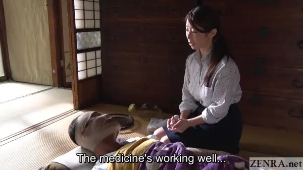 He's bedridden, covered in bandages nearly from head to toe, and his vernacular consists of nothing more than grunts. The only part of him that still seems to work is his manhood which he very insistently has his wife take care of more often than what's considered normal. Also given his ailments and his status as the quintessential 'Japanese man of Showa', reciprocating sexual affection does not happen at all.