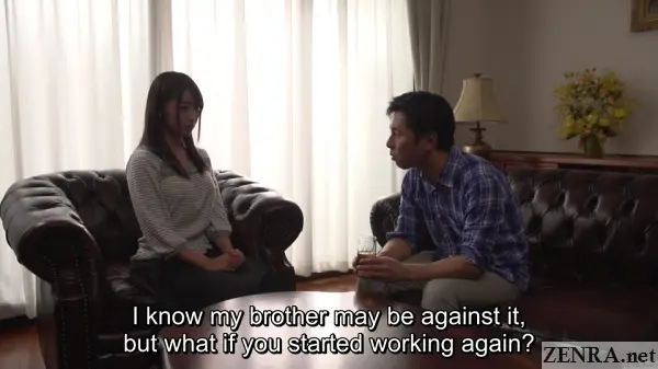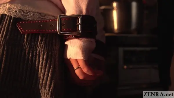 STAGNANT DESIRES OF A NEGLECTED WIFE focuses heavily on masochistic play, but in a way that's not as extreme as we've seen in other ORGA releases. What happens here still has SAKI heavily on the submissive side of the equation, but it's a bit more conventional. Think less crawling naked on all fours fetching toys for a shady mafioso and more impromptu blowjob in the kitchen for a demanding husband. Later on she finds herself turned on by exhibitionism as her husband's younger starts covertly watching them have sex. This is what the bulk of the release is about: SAKI's rekindling passions brought about via her gentle peeping tom -in-law life coach. Seriously, life coach. Some of his lines make him sound more like an overtly concerned guardian angel rather than a buck in Tokyo for a few months on business.