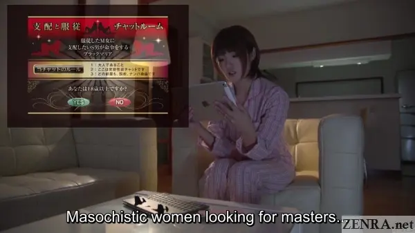 Like many of us, she loves going online though rather than peruse Reddit, she sticks to some truly bizarre sadomasochism sites. One such is a chat room where soon enough she finds a master who's elated to take over her 'training'.