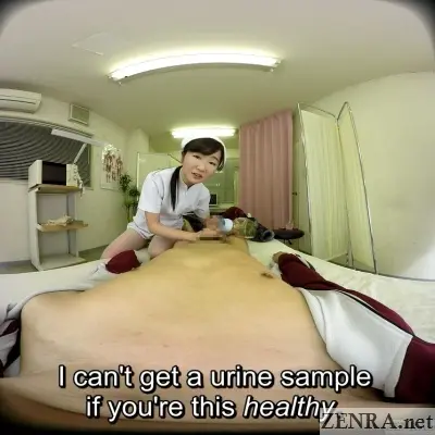 AYU SUMIKAWA, a fresh-faced JAV star, plays a nurse in this setting.  OK, so of course this isn't a real clinic, but who knows--it could be a slightly adult video'ish portrayal of what may happen some years from now.  Imagine being a lucky patient needing a urine sample, but are too stiff to give one.  Imagine then that a cute and polite nurse notices your predicament and helps out with you not needing to raise even a finger?  And what if you two decide to have sex then and there because...why not?  Oh, you can finish inside her too because all nurses in this futuristic get-up apparently are always on birth control.