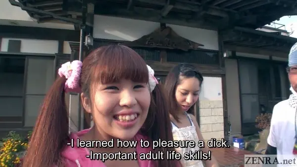 Three times a charm, right? Earlier this year we showed two 'farm gyaru' updates. The first was a crazy big group sex affair and a few weeks later we showed something a tad more intimate, but still balls-to-the-wall audacious. Today, we return to this series...well, to the heart of the series. COUNTRYSIDE PROSPERITY RESTORATION PROGRAM YOUTH ADVENTURE, unlike the previous two titles, follows the same theme, but technically is a standalone movie. The same actresses do not appear. There's no tan gyaru here. Rather, we go full-on "minimum" with a trio of petite and naive students looking to learn about farming and get carried away by having a rowdy condom-free creampie orgy (this is a JAV after all!).
