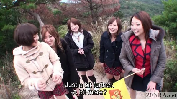 Do note aside from the middle section of the first half, full-on penetration is not the focus of the early portion of this massive title. You get nudity--lots of it--and some light sexual play on the bus. You also get them stripping naked and shouting profane insanities from the top of a mountain. And going back to the actual sex--yes, there is an amazing 'sex while friends watch' moment going on too.