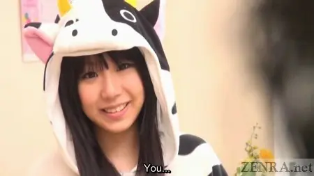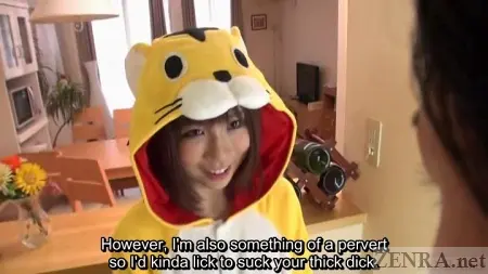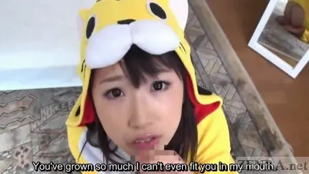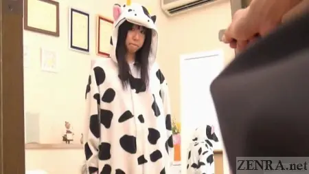 That's what today's production is about, really. Not normal cosplay per say, but pert Japanese AV stars living out the fantasies of those who enjoy their women dressed from head to toe as wildlife. There's the cow, the tiger, and something that resembles a hamster. All feature fluffy hoods that at times cover their faces and all work wonders at hiding their bodies.
