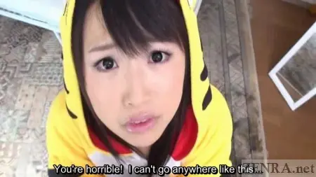 Shocked discoveries highlight the early portion of scenes where the cosplay-clad AV stars gaze in disbelief at the bathroom mirror while wondering out loud why their wardrobe has been altered so. Some feign anger, but most are simply surprised and worry about how they can go outside in such a state. It really does seem like their chosen cosplay pajama getups are their only outfits!