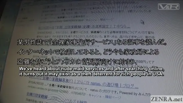 The gist: V&R hears about the nude maid phenomenon gaining popularity in USA. After doing some research, they find out the service now exists in Japan (!). Curious to see what exactly happens, they give a poor AD (assistant director) a wad of with explicit instructions to order their services and to film it. He complies (this is Japan after all; you'd think he'd just bolt with all that ?).