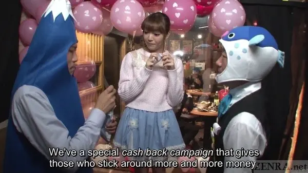The rundown: we target eager women who want to make ! How? Ladies Day Campaign! Film a quick promotional clip for Izakaya Furu-chan (meaning 'old') and immediately get 5,000 yen off your bill. Stick around and answer some naughty questions plus a wee bit more (see screenshots) to win even more . It's OK! Your boyfriend will never find out! And sure you can view the izakaya the whole time, but thanks to our magic one-way mirror, they can't see in!