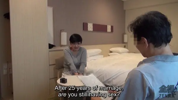GOGOS does not play this game. Sure, we may not be given exact ages, but in this series at least, I'm more than certain that all the performers are indeed 'around 50' and in some cases, even older! Today in the 33rd installment and the fourth we're showing at ZENRA*, we've realistic Shizuka. She really nails what this series sets out for: a big butt, busty, not fat, but not what one would call in shape. Short hair that perhaps may be seen as unstylish. Nervous and embarrassed, but wanting to finally break free from a 'once in a blue moon quick missionary sex only' husband. Why JAV? Why not! The real reason of course is mentioned during the interview that kicks off this movie and won't be spoiled here.