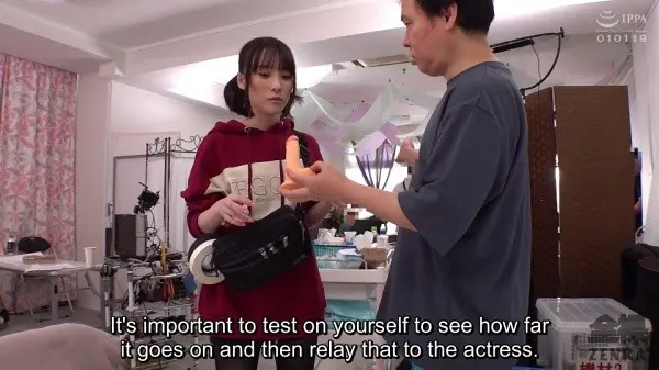 That--new female hires somehow ending up with dicks in them when they're supposed to be doing various behind-the-scenes tasks--is the basic flow of the four big encounters that make up NEW ASSISTANT DIRECTORS - FIRST DAY AT A JAV STUDIO. This movie really nails it and what's more, every scene has a totally different flow. This is not simply a new female AD going through the same basic setup four times even though that would still have resulted in a good movie. What we get instead is a 'traditional' behind-the-scenes of an active shoot encounter done REALLY realistically, a half year employee testing out the capabilities of juice men including a few accidental misfires behind having a threesome with the director and an increasingly off season Isedon Uchimura, followed by a weird in a slapstick comedy type of way interview with word play aplenty that also leads to a devil's threesome with a femdom twist, followed lastly by a cute new hire on scene for another juice man interview but this one is not like the others!