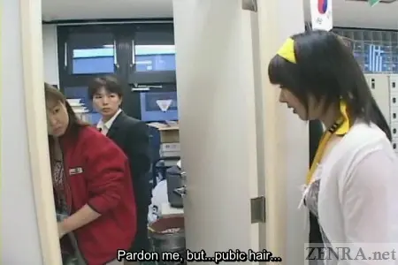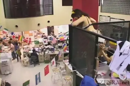 Back at the office on one of their first days, sexual ice breakers continue with the new female workers being required to work totally naked due to a strange company policy limiting in-house uniforms to either the ones supplied or nothing at all (and unfortunately, the fabric company who makes their uniforms is running behind!).
