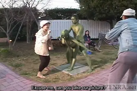 ZENRA #Subtitled #ClassicJAVA Japanese taken to a new level by having an AV star painted and placed in a park as a statue. Japanese students go naked in school with subtitles.